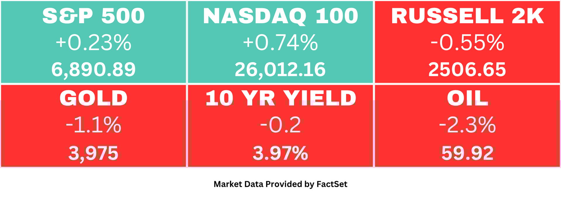 Notable Losers: MSTR -3.7%, TTD -3.6%, QCOM -3.5% , ARM -3.1%, JNJ -1.7%,